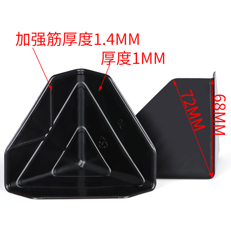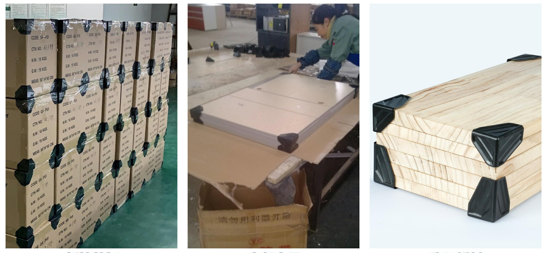 Тространи пластични угаони заштитник за картоне је погодан за заштиту већине материјала током транспорта или руковања, као што су стакло, сочива, тоалетни прибор, акрил, ПВЦ панели, плочице, рамови, алуминијум, дрво и плоче за намештај.